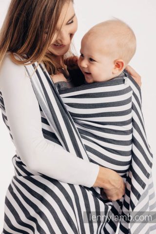 Att bära i just bärsjal innebär att du kan göra en mängd olika knyt, det finns så mycket olika knyt du kan göra efter dina egna preferenser, till olika knyt kan olika längder rekommenderas. Men när man börjar med bärsjal brukar jag rekommendera att man tar sin “basstorlek”, det är den storlek som krävs för att knyta det vanligaste knytet som heter omslutet kryss (FWCC)