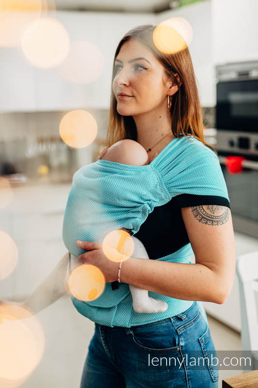 Published 30 april, 2020. Size: 533 × 800 in LennyHybrid Half Buckle Carrier Basic Line – Little Herringbone Turquoise