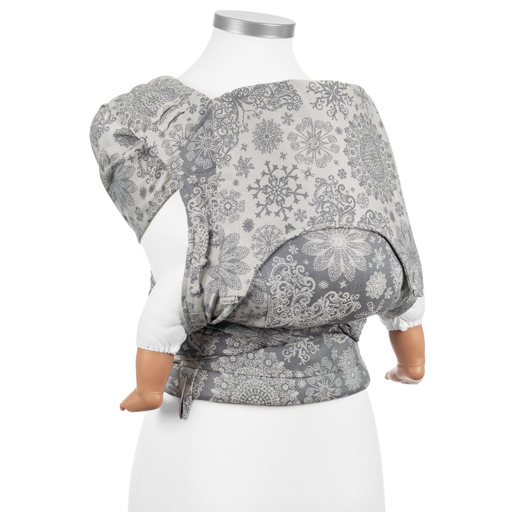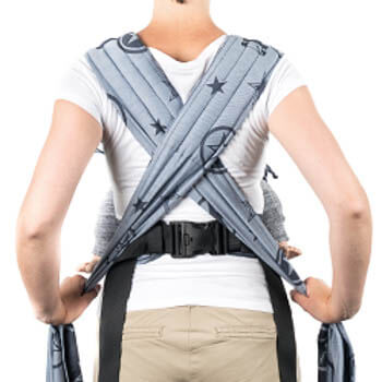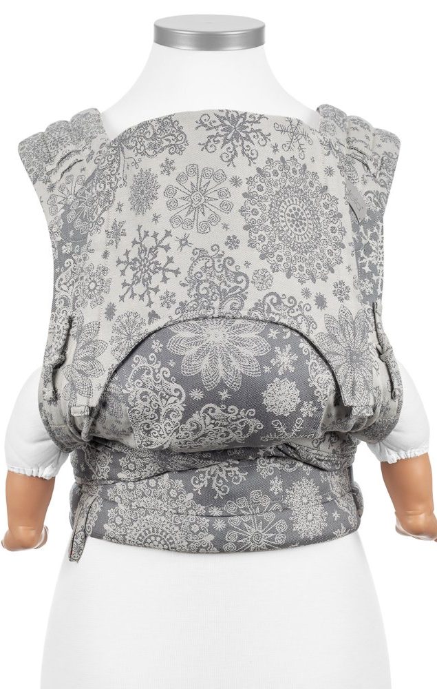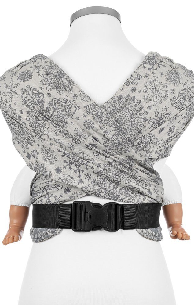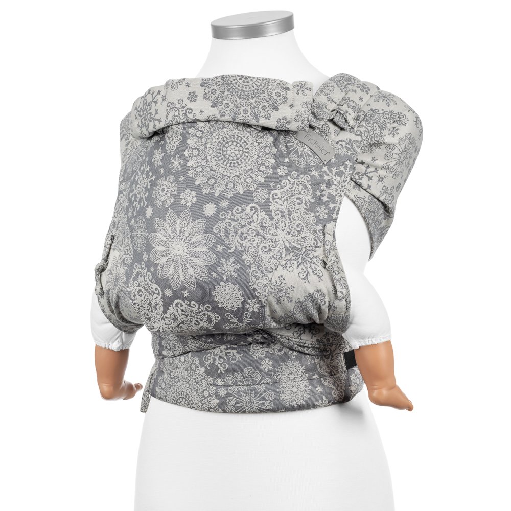 Fidella FlyClick är en half-buckle sele, du knäpper den med spänne i midjan och knyter sedan axelremmarna. Panelen är justerbar i höjd och bredd så att du kan anpassa den efter just din bebis. Vadderad vid barnets ben, integrerad huva. Du kan välja att bära ditt barn på mage, höft eller rygg.