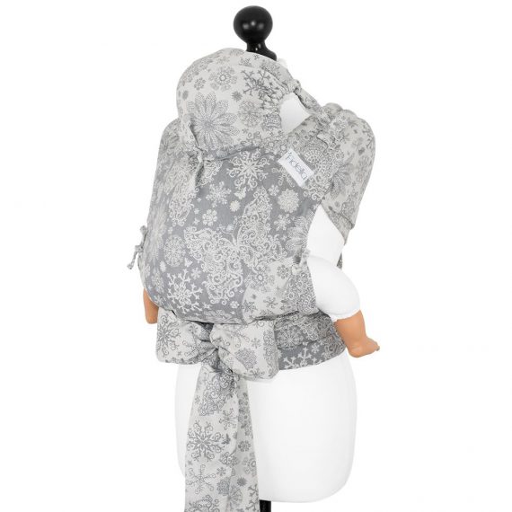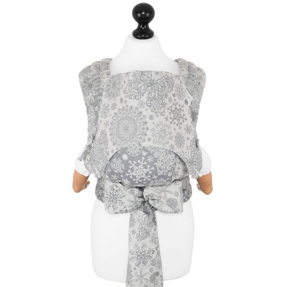 FlyTai har panel med fyra delvis vadderade tygstycken att knyta i både midjan och till axelremmar. Huvudstödet är fastsytt i panelen, bra att använda när barnet somnat eller behöver lugnas från intryck. Storleken på panelen kan justeras för optimal passform, både på höjd och bredd. Du kan välja att bära ditt barn på mage, höft eller rygg.