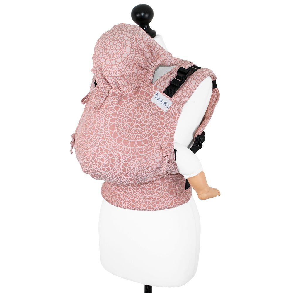 Fidella Fusion är en mycket mjuk bärsele med spännen och höftbälte. Panelen är justerbar i höjd och bredd så att du kan anpassa den efter just din bebis. Vadderad vid barnets ben, fastsydd huva. Du kan välja att bära ditt barn på mage eller rygg. Passar vanligen föräldrar med klädstorlek XS-XXL