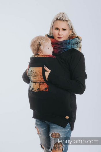 Lång skön modell med långa ärmar med muddar som sluter tätt vid handlederna, värmer skönt under höstens dagar. Lätt att ta på när du bär ditt barn i bärsele eller sjal. Mjuk och mysig för dig och ditt barn. Fungerar bra att använda både för bärande på rygg och mage. Du kan också ha den som gravidjacka eller vanlig lång hoodie. Vill du ha den som vanlig hoodie och inte till gravidmagen eller för att bära barn så rekommenderar vi att gå ner en storlek. Se storlekstabeller nedan för mer detaljerad info.