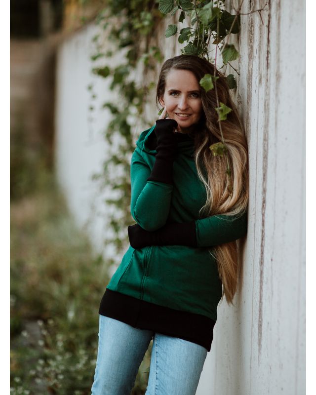 Denna bärtröja är designad speciellt för den kvinnliga kroppen. Sweatshirt 5in1 är den perfekta lösningen för dig som värderar komfort och smidighet. Denna modell har inga paneler, funktionaliteten garanteras genom smarta dubbla dragkedjor och en flik. Du kan bära din nyfödda likväl som ett barn på 2.5 år. Observera att du behöver bära ditt barn i en bärsjal eller bärsele under. Detta är ett klädesplagg inte ett bärdon.