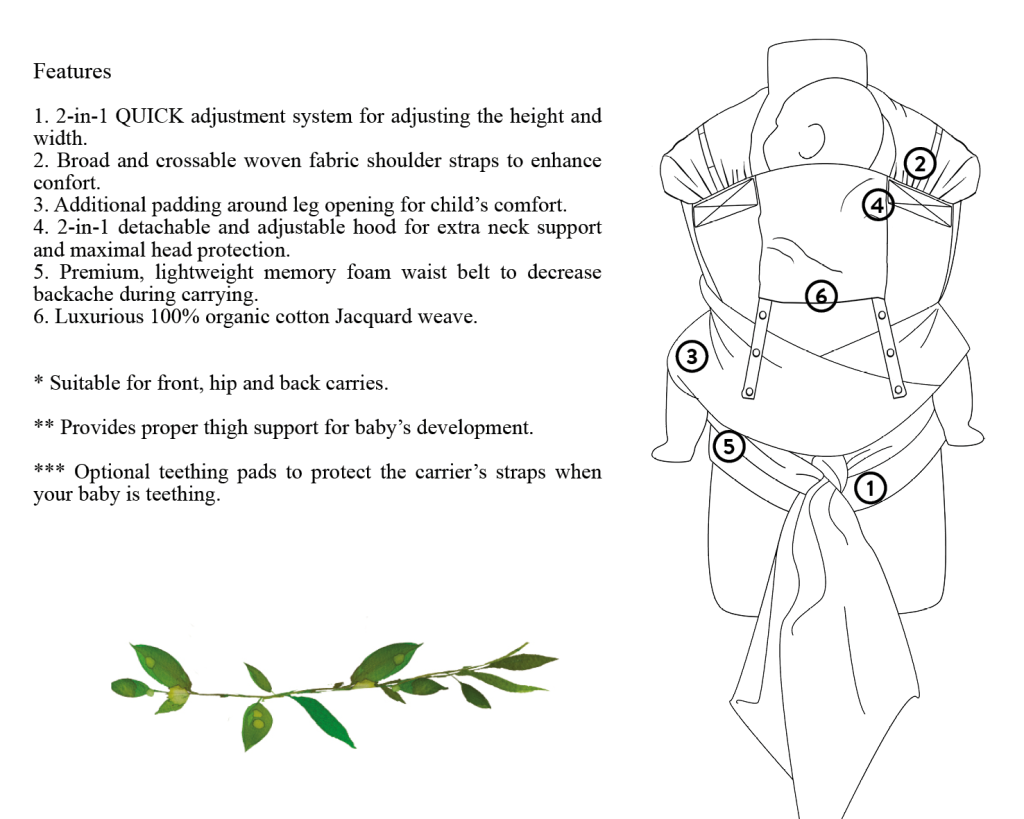 ☑ De breda vävda axelremmarna kan enkelt justeras för komfort, ändras över axlarna för att förändra ditt barns viktfördelning eller svepas runt på olika sätt för extra stöd. Flexibiliteten hos de vävda sjalremmarna är fantastiska, de kan justeras precis som du och din bebis behöver, samtidigt som de säkerställer en perfekt passform. De har ingen vaddering, vilket gör denna mer sjal-lik än Isara HalfBuckle.