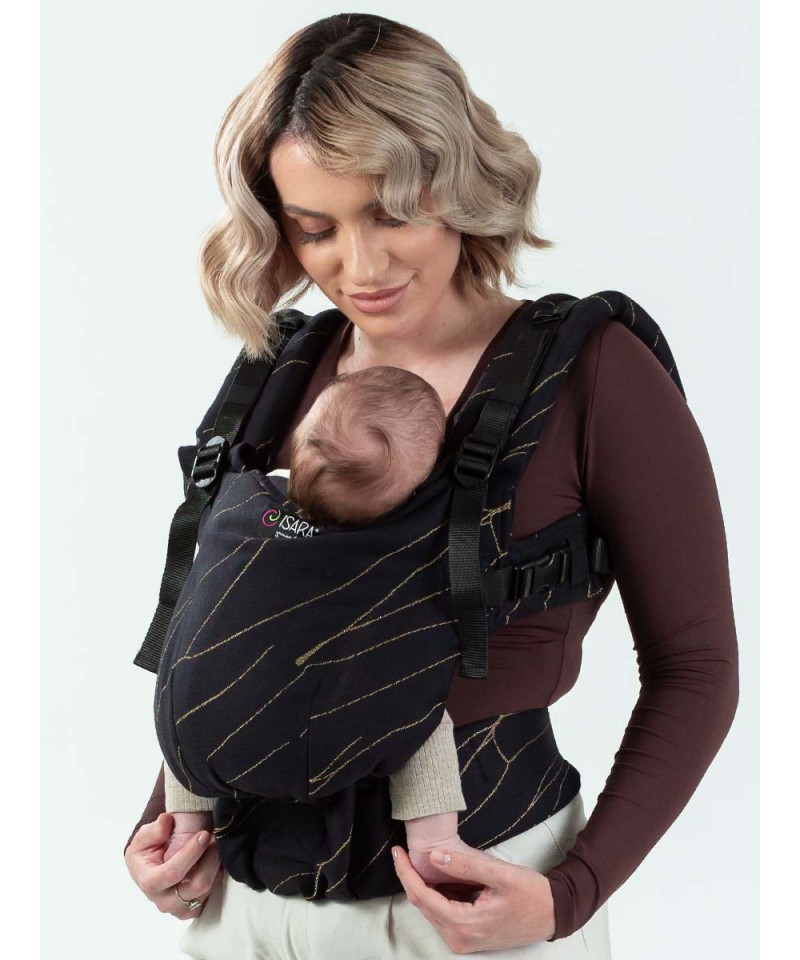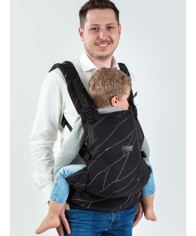Isara The One är en bärsele som det arbetats hårt med att ta fram. Den passar från nyfödd utan spädbarnsinlägg upp till förskoleålder. The One passar föräldrar av olika längd och kroppsform. Det är möjligt att justera höjd och längd på panelen, tyget som omfamnar ditt barn, allt för att uppnå en ultimat passform åt just ditt barn. Passar nyfödda, små barn och till och med förskolebarn.