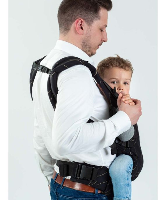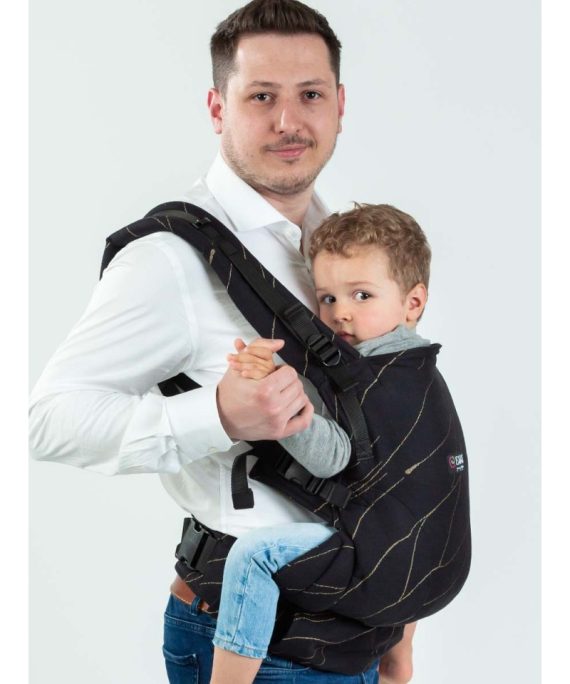 – Sittbredden, du kan enkelt justera bredden steglöst för att passa ditt barn. Det ingår även två löstagbara sätestransformatorer, som breddar sittytan maximalt, vilket är perfekt när du vill bära ett stort barn, till och med ett långt förskolebarn.