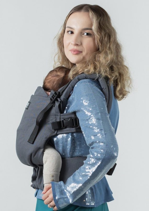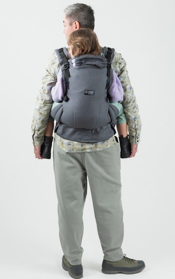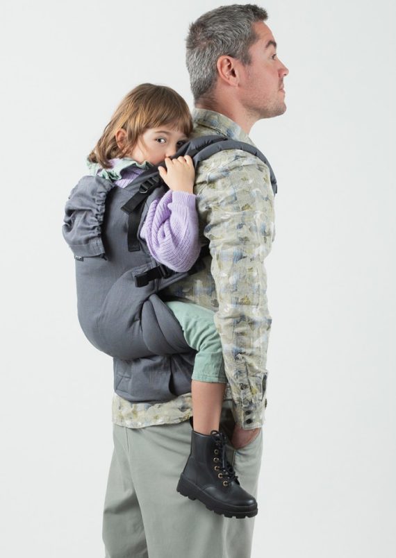– Sittbredden, du kan enkelt justera bredden steglöst för att passa ditt barn. Det ingår även två löstagbara sätestransformatorer, som breddar sittytan maximalt, vilket är perfekt när du vill bära ett stort barn, till och med ett långt förskolebarn.