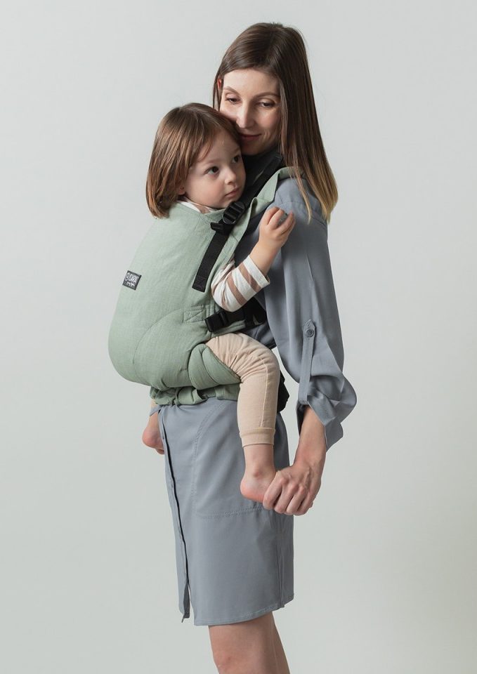– Sittbredden, du kan enkelt justera bredden steglöst för att passa ditt barn. Det ingår även två löstagbara sätestransformatorer, som breddar sittytan maximalt, vilket är perfekt när du vill bära ett stort barn, till och med ett långt förskolebarn.