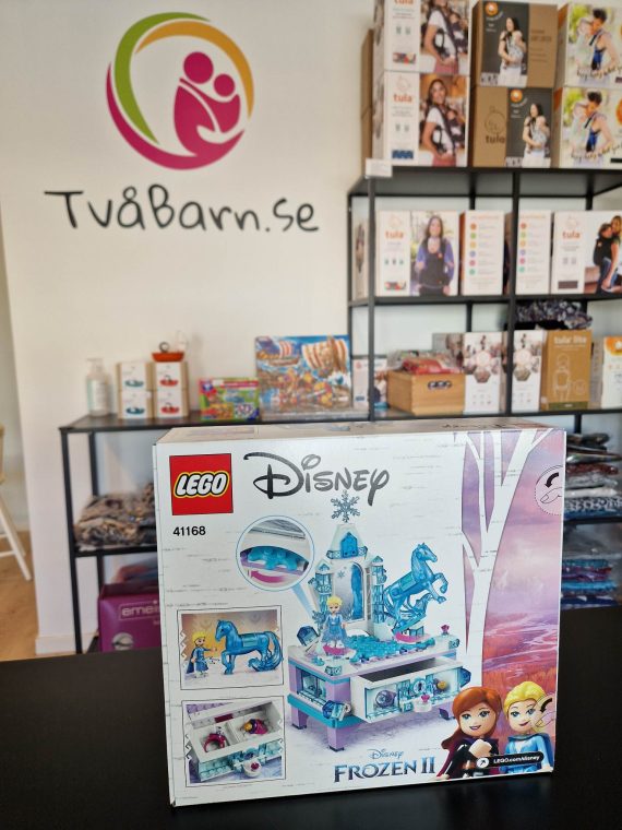 Elsas smyckeskrin är en fantastisk present till alla fans av Disneys Frost filmer. Den är både dekorativ och funktionell, med en låsbar låda för säker förvaring av smycken eller andra små favoritsaker. Det är också kul att snurra runt Elsa och Nokk och se dem utforska snöflingedekoren. De två LEGO ringarna och karaktärerna från filmen är en extra bonus och kommer att göra leken ännu roligare.