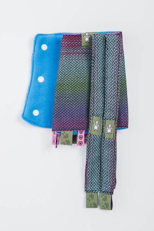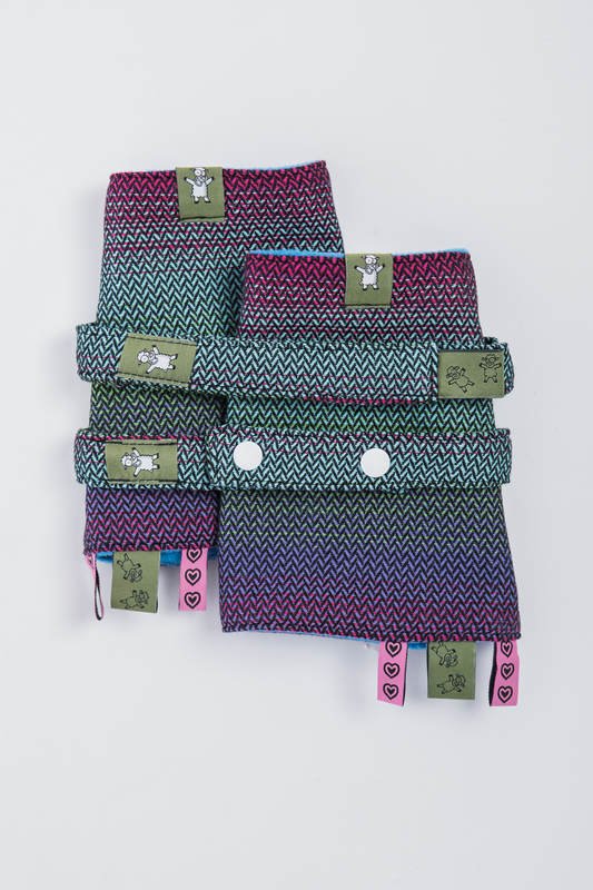 Håll din bärsele fräsch längre genom att använda dessa axelremsskydd. De skyddar bärselen mot dregel och från att barnet biter på den. Med följer remmar att fästa på huvan, detta gör att du enklare når huvan när du bär på rygg.
