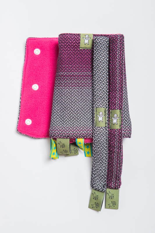Håll din bärsele fräsch längre genom att använda dessa axelremsskydd. De skyddar bärselen mot dregel och från att barnet biter på den. Med följer remmar att fästa på huvan, detta gör att du enklare når huvan när du bär på rygg.