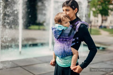 Detta är en modell som passar bra för dig som hittills burit din bebis i trikåsjal eller annan bärsele och nu önskar en mjukare bärsele. Modellen är inte gjord för nyfödda utan passar från ca 4-6 mån ålder beroende på ditt barns storlek/längd.