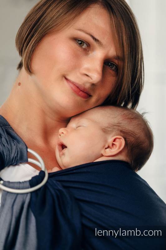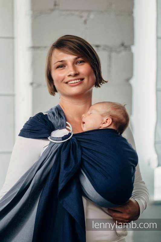 Med en ringsjal kan du snabbt och lätt bära ditt barn, du trär tyget genom ringarna, sätter i barnet och spänner enligt instruktionerna. Observera att det inte är rekommenderat att bära barnet i position “vagga” då det kan leda till att barnet inte får fria luftvägar. Lenny Lamb har som standard att tillverka ringsjalar för vänster axel.
