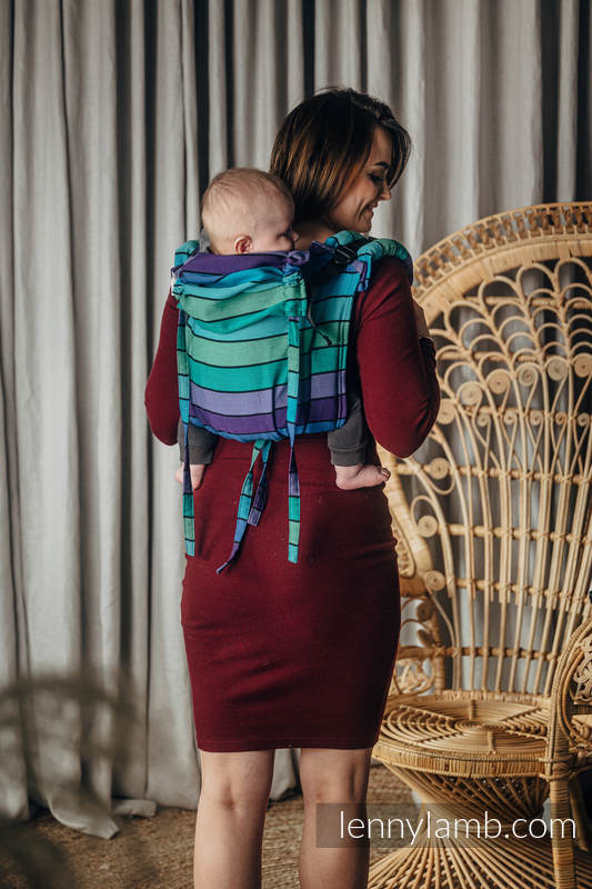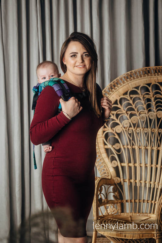 Lenny Lamb Buckle Onbuhimo är designad för barn som kan sitta på egen hand. Vanligast är att bära på rygg i en onbuhimo. Panelen går att justera för optimal passform, huvan går också att justera efter eget önskemål. Passar från 5-20 kg.