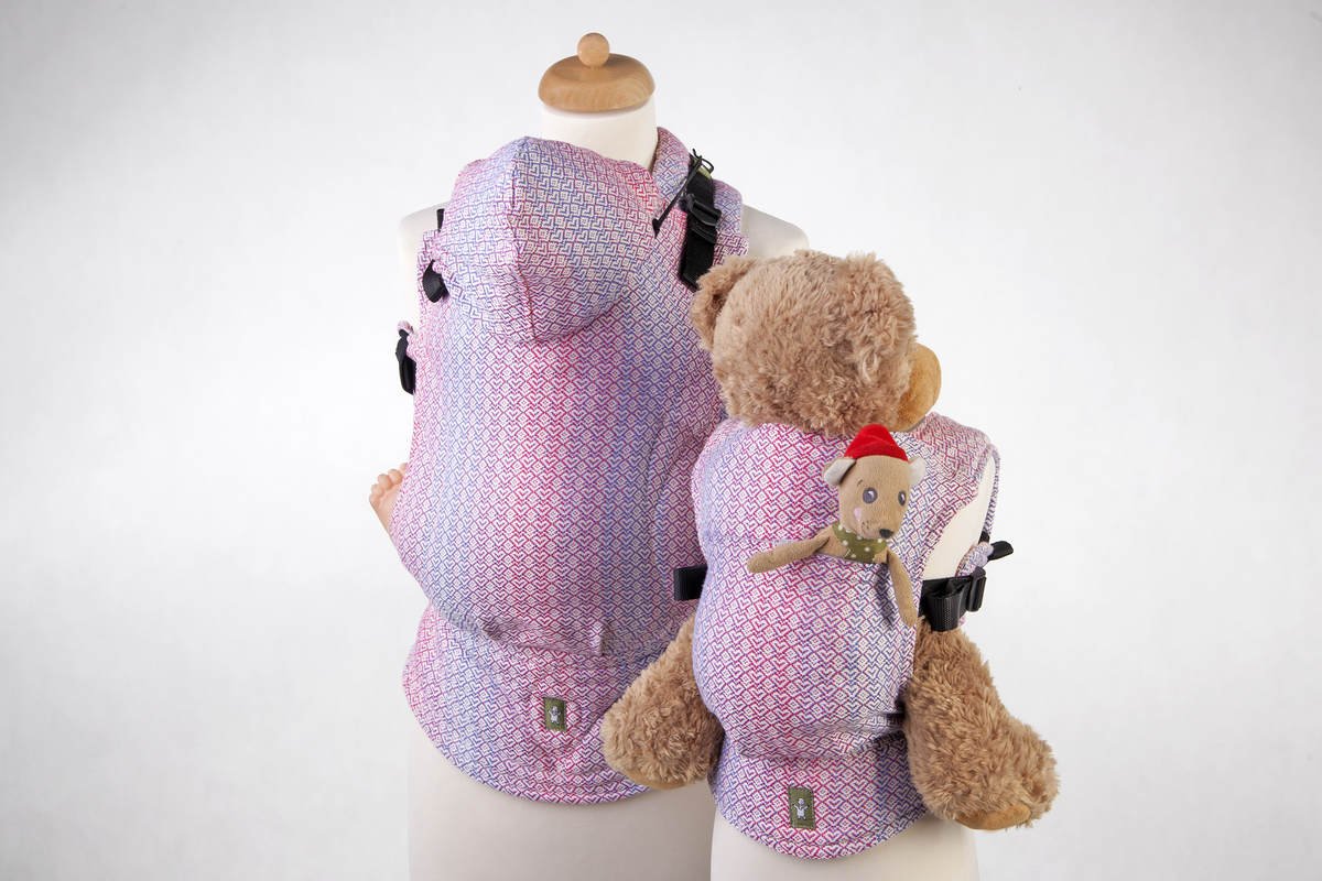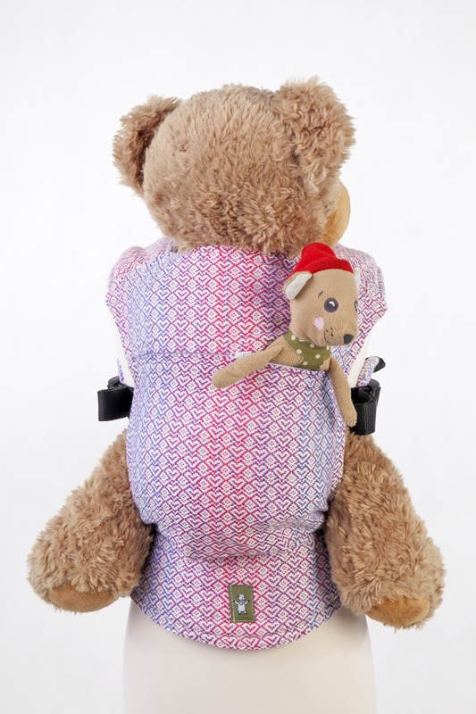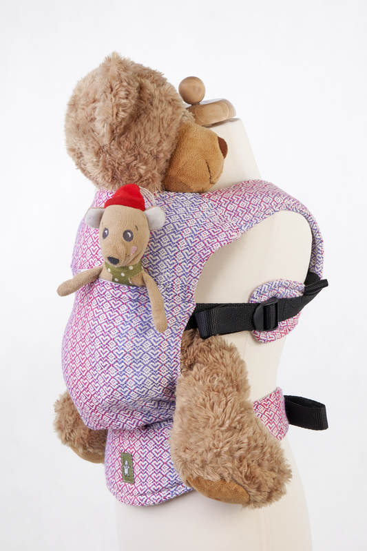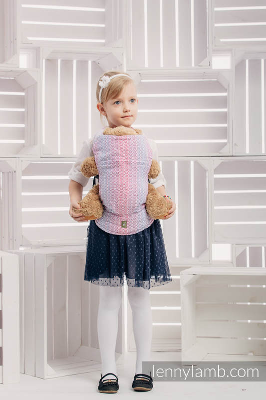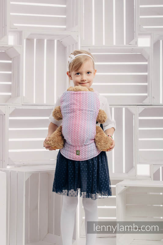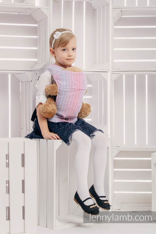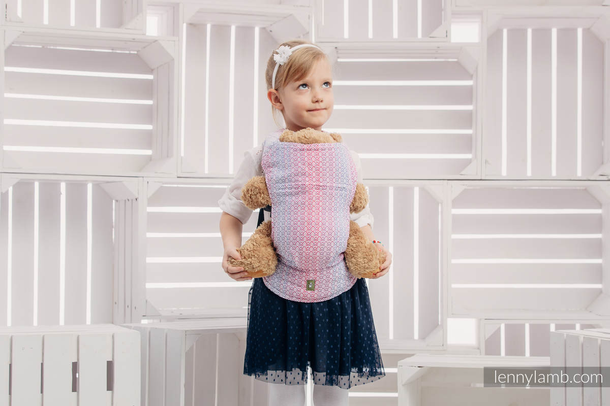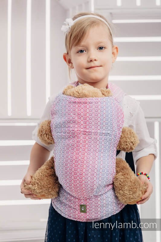 En härligt mjuk sele som passar barn som vill bära sina mjukdjur eller dockor. Samma kvalitetstyg som Lenny Lambs sjalar och bärselar.