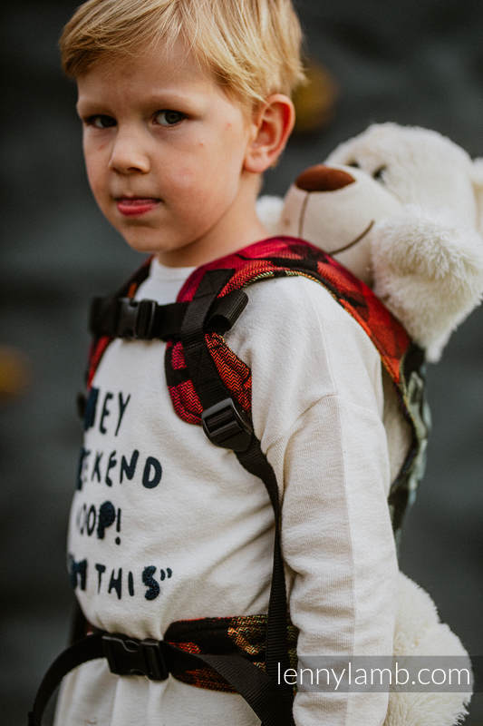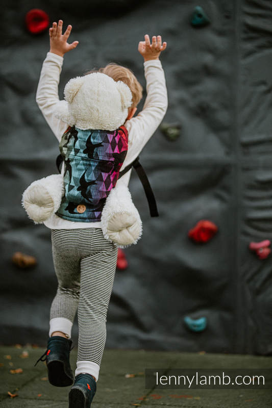 En härligt mjuk sele som passar barn som vill bära sina mjukdjur eller dockor. Samma kvalitetstyg som Lenny Lambs sjalar och bärselar.