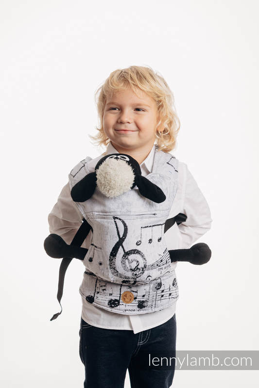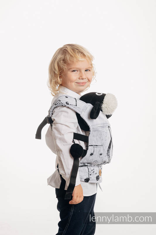 En härligt mjuk sele som passar barn som vill bära sina mjukdjur eller dockor. Samma kvalitetstyg som Lenny Lambs sjalar och bärselar.
