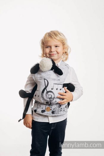 En härligt mjuk sele som passar barn som vill bära sina mjukdjur eller dockor. Samma kvalitetstyg som Lenny Lambs sjalar och bärselar.