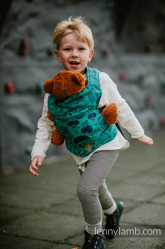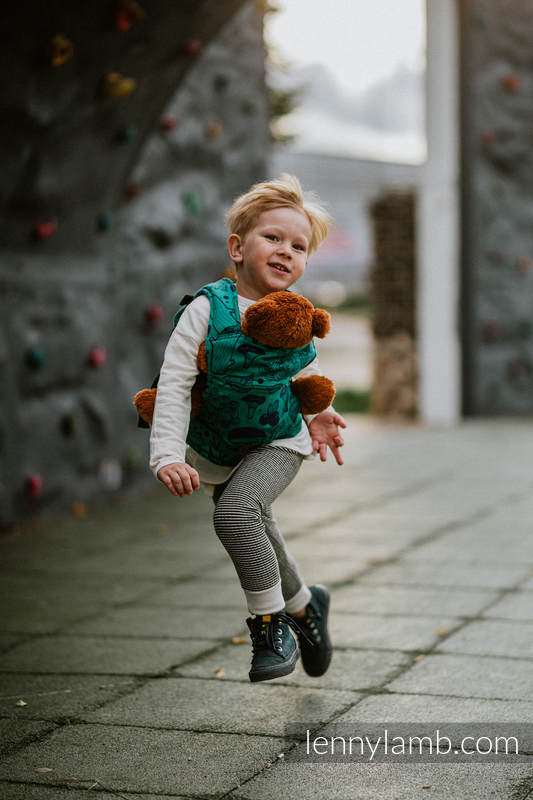 En härligt mjuk sele som passar barn som vill bära sina mjukdjur eller dockor. Samma kvalitetstyg som Lenny Lambs sjalar och bärselar.