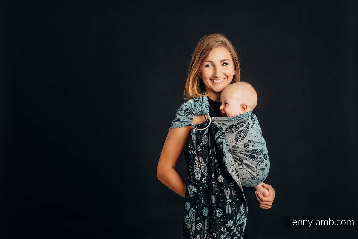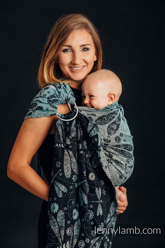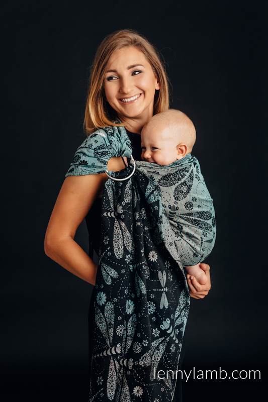 Med en ringsjal kan du snabbt och lätt bära ditt barn, du trär tyget genom ringarna, sätter i barnet och spänner enligt instruktionerna. Observera att det inte är rekommenderat att bära barnet i position “vagga” då det kan leda till att barnet inte får fria luftvägar. Lenny Lamb har som standard att tillverka ringsjalar för vänster axel.