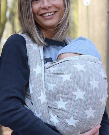 Med en ringsjal kan du snabbt och lätt bära ditt barn, du trär tyget genom ringarna, sätter i barnet och spänner enligt instruktionerna. Observera att det inte är rekommenderat att bära barnet i position “vagga” då det kan leda till att barnet inte får fria luftvägar. Lenny Lamb har som standard att tillverka ringsjalar för vänster axel.