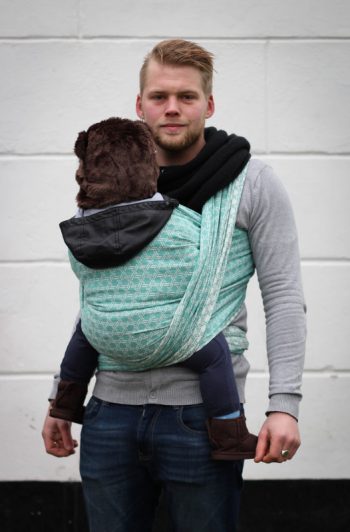 Med en ringsjal kan du snabbt och lätt bära ditt barn, du trär tyget genom ringarna, sätter i barnet och spänner enligt instruktionerna.