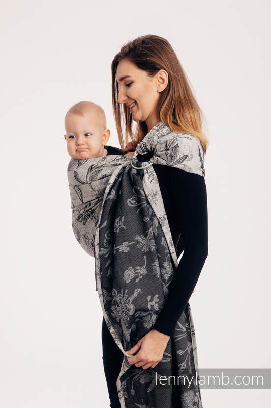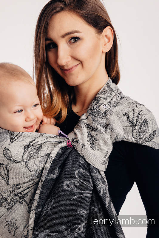 Med en ringsjal kan du snabbt och lätt bära ditt barn, du trär tyget genom ringarna, sätter i barnet och spänner enligt instruktionerna. Observera att det inte är rekommenderat att bära barnet i position “vagga” då det kan leda till att barnet inte får fria luftvägar. Lenny Lamb har som standard att tillverka ringsjalar för vänster axel.