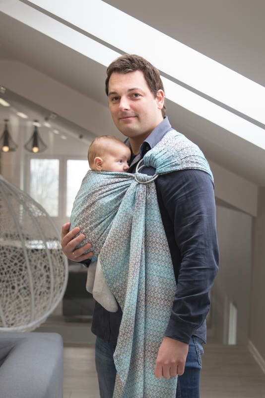 Med en ringsjal kan du snabbt och lätt bära ditt barn, du trär tyget genom ringarna, sätter i barnet och spänner enligt instruktionerna. Observera att det inte är rekommenderat att bära barnet i position “vagga” då det kan leda till att barnet inte får fria luftvägar. Lenny Lamb har som standard att tillverka ringsjalar för vänster axel.
