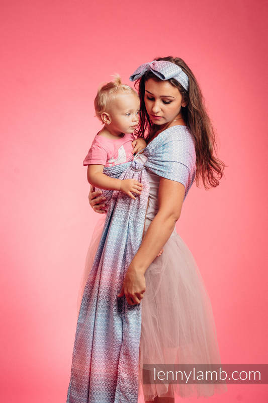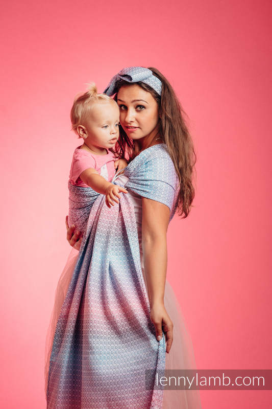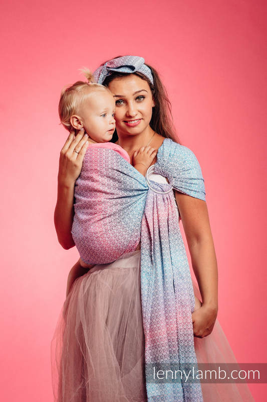 Med en ringsjal kan du snabbt och lätt bära ditt barn, du trär tyget genom ringarna, sätter i barnet och spänner enligt instruktionerna. Observera att det inte är rekommenderat att bära barnet i position “vagga” då det kan leda till att barnet inte får fria luftvägar. Lenny Lamb har som standard att tillverka ringsjalar för vänster axel.