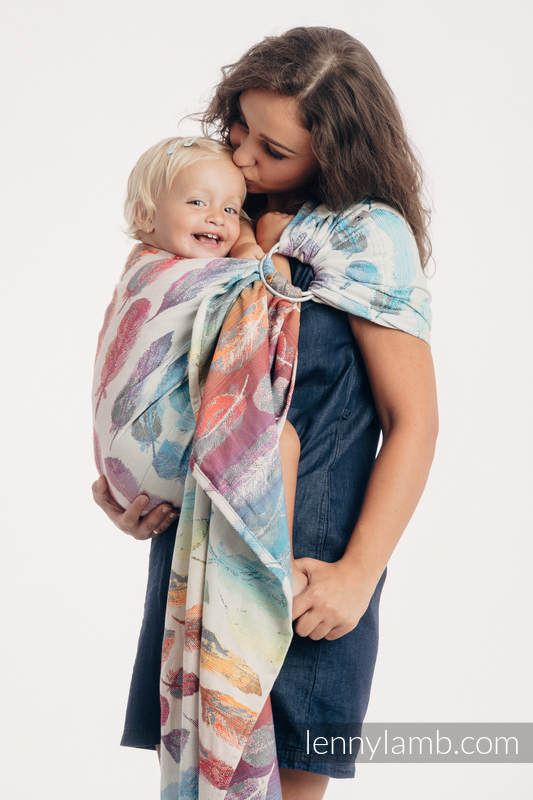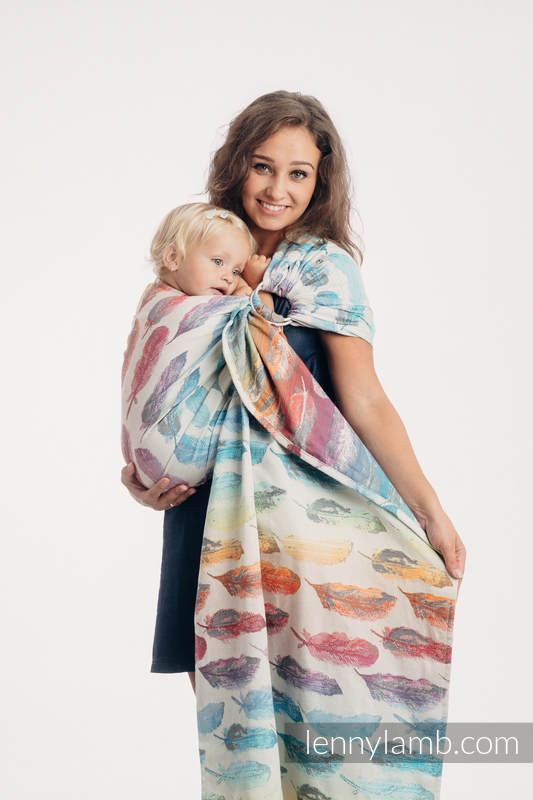 Med en ringsjal kan du snabbt och lätt bära ditt barn, du trär tyget genom ringarna, sätter i barnet och spänner enligt instruktionerna. Observera att det inte är rekommenderat att bära barnet i position “vagga” då det kan leda till att barnet inte får fria luftvägar. Lenny Lamb har som standard att tillverka ringsjalar för vänster axel.