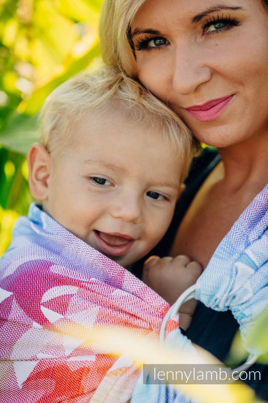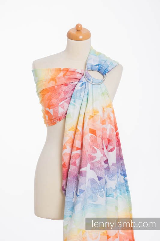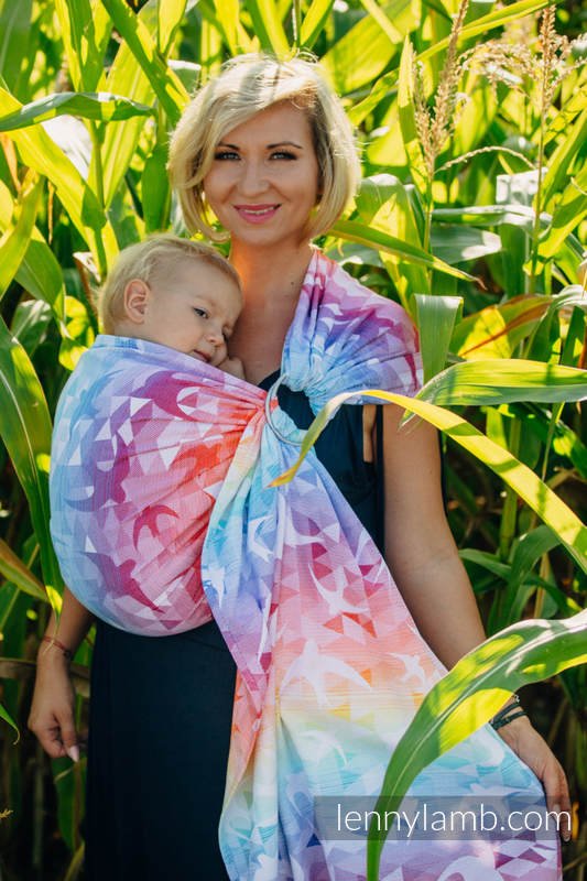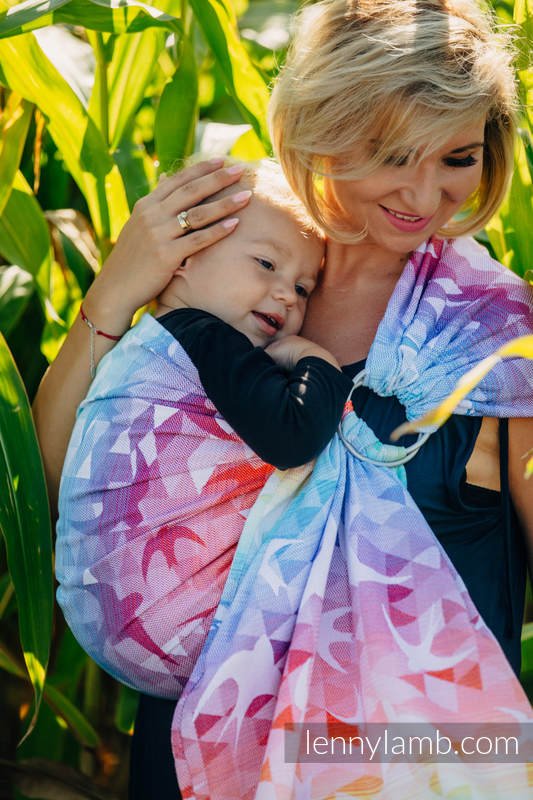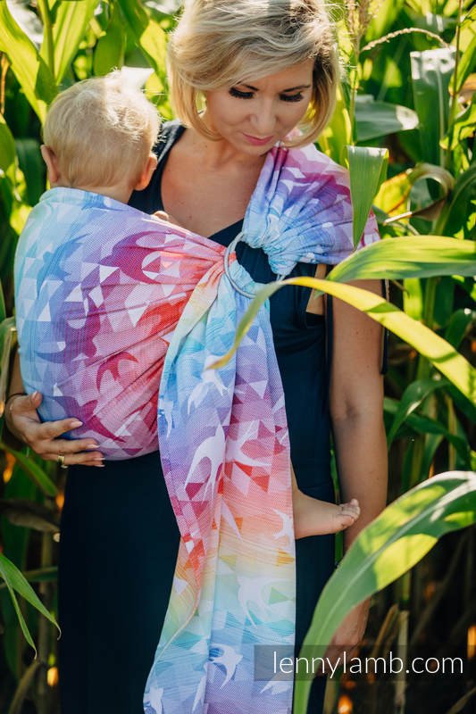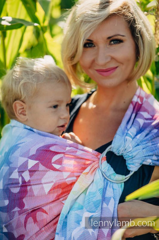 Med en ringsjal kan du snabbt och lätt bära ditt barn, du trär tyget genom ringarna, sätter i barnet och spänner enligt instruktionerna. Observera att det inte är rekommenderat att bära barnet i position “vagga” då det kan leda till att barnet inte får fria luftvägar. Lenny Lamb har som standard att tillverka ringsjalar för vänster axel.