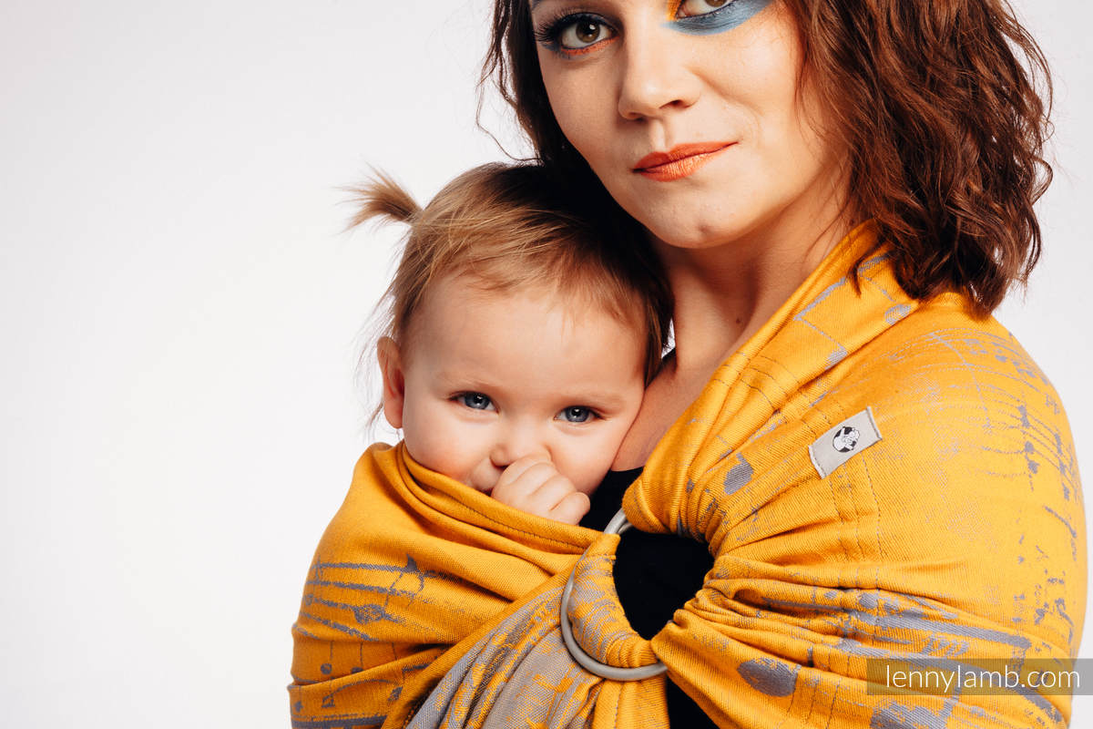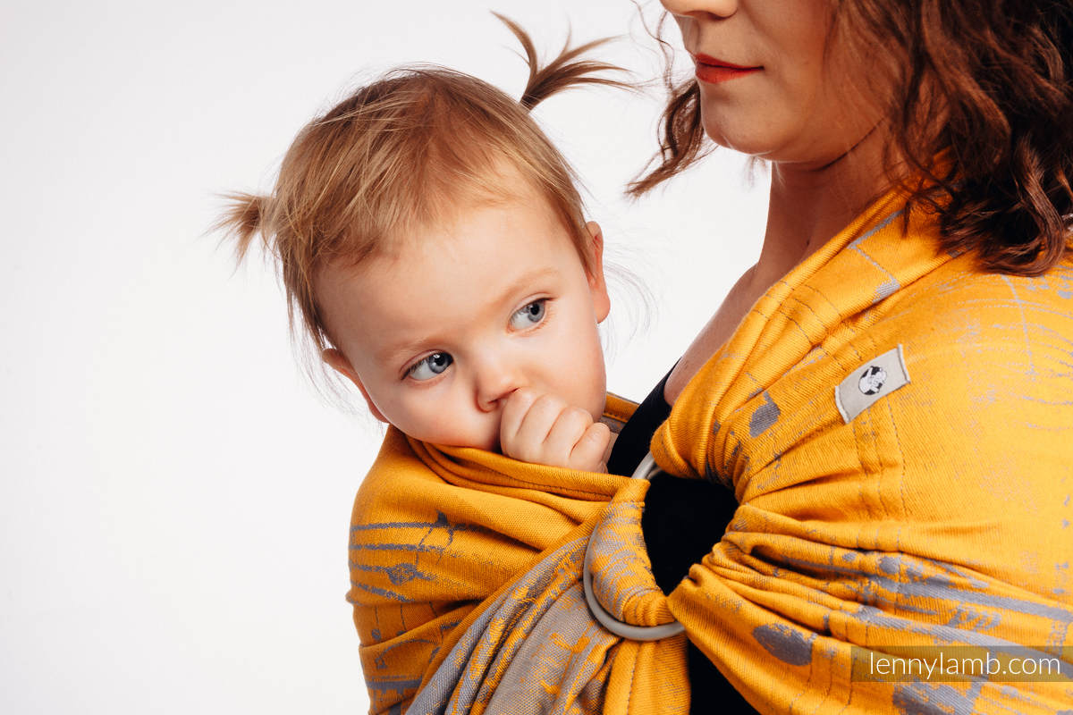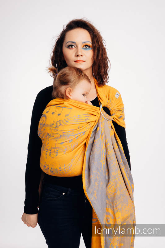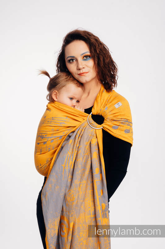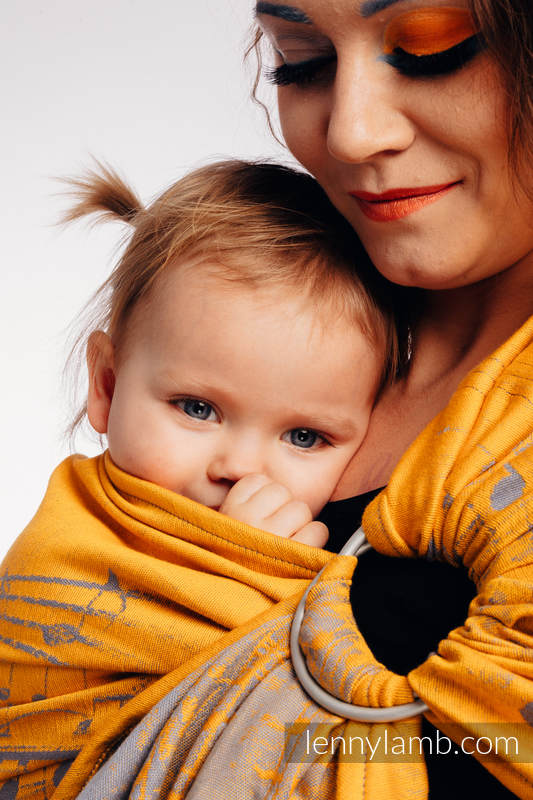 Med en ringsjal kan du snabbt och lätt bära ditt barn, du trär tyget genom ringarna, sätter i barnet och spänner enligt instruktionerna. Observera att det inte är rekommenderat att bära barnet i position “vagga” då det kan leda till att barnet inte får fria luftvägar. Lenny Lamb har som standard att tillverka ringsjalar för vänster axel.