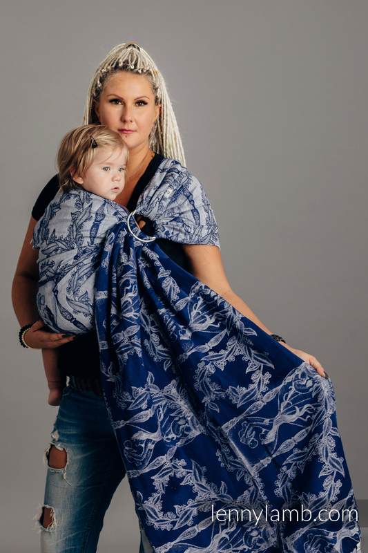 Med en ringsjal kan du snabbt och lätt bära ditt barn, du trär tyget genom ringarna, sätter i barnet och spänner enligt instruktionerna. Observera att det inte är rekommenderat att bära barnet i position “vagga” då det kan leda till att barnet inte får fria luftvägar. Lenny Lamb har som standard att tillverka ringsjalar för vänster axel.