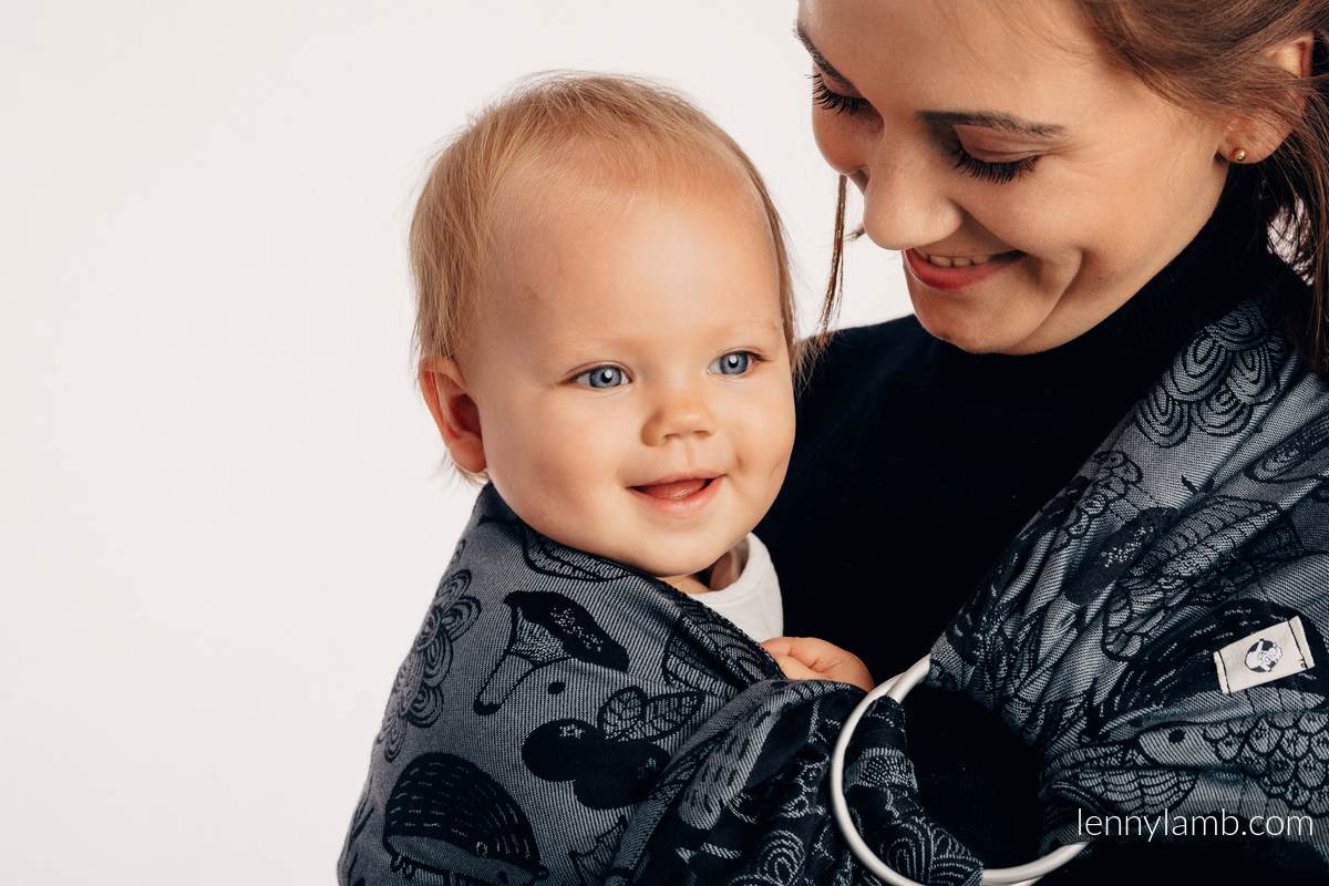 Med en ringsjal kan du snabbt och lätt bära ditt barn, du trär tyget genom ringarna, sätter i barnet och spänner enligt instruktionerna. Observera att det inte är rekommenderat att bära barnet i position “vagga” då det kan leda till att barnet inte får fria luftvägar. Lenny Lamb har som standard att tillverka ringsjalar för vänster axel.