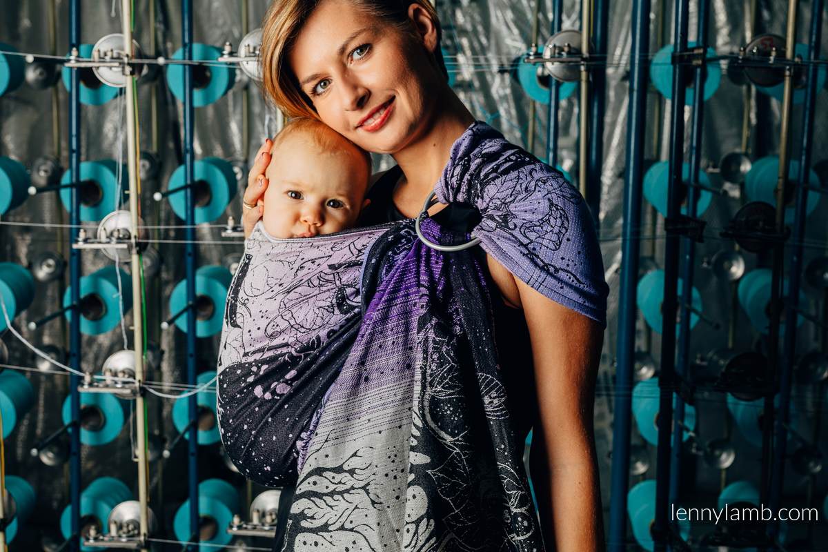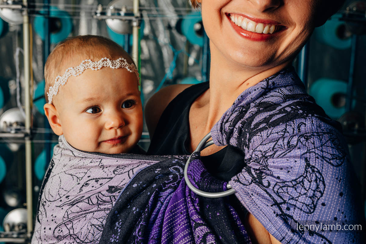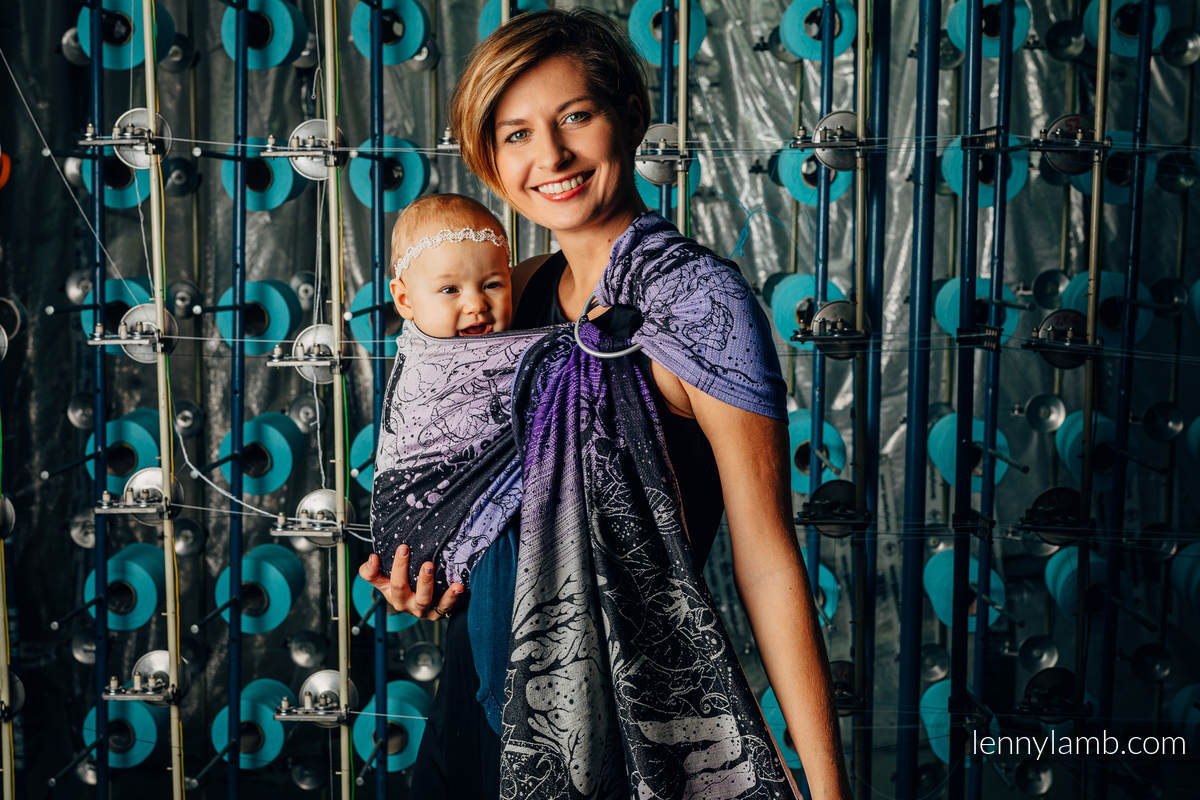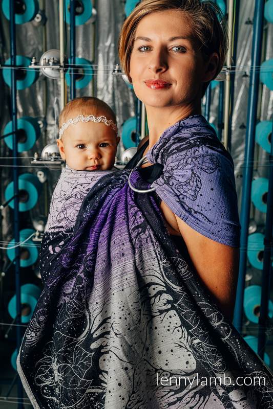Med en ringsjal kan du snabbt och lätt bära ditt barn, du trär tyget genom ringarna, sätter i barnet och spänner enligt instruktionerna. Observera att det inte är rekommenderat att bära barnet i position “vagga” då det kan leda till att barnet inte får fria luftvägar. Lenny Lamb har som standard att tillverka ringsjalar för vänster axel.