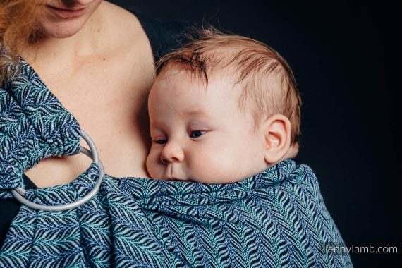 Med en ringsjal kan du snabbt och lätt bära ditt barn, du trär tyget genom ringarna, sätter i barnet och spänner enligt instruktionerna. Observera att det inte är rekommenderat att bära barnet i position “vagga” då det kan leda till att barnet inte får fria luftvägar. Lenny Lamb har som standard att tillverka ringsjalar för vänster axel.