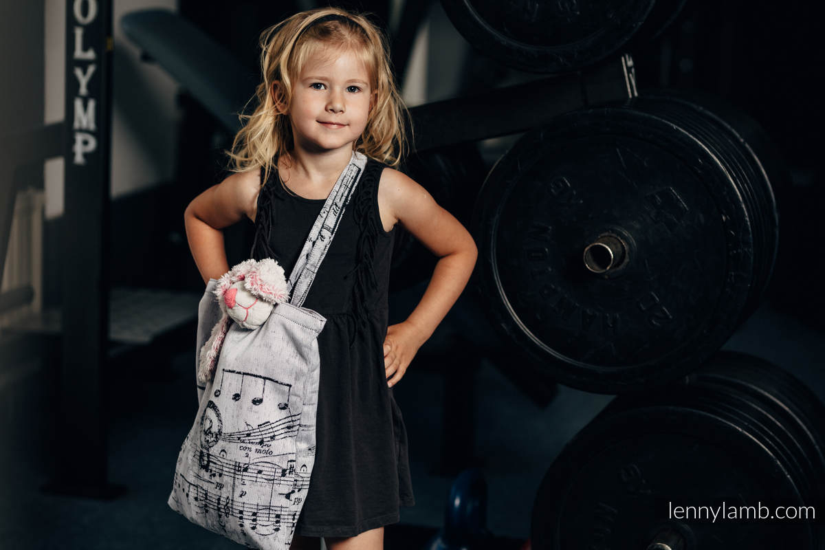 En snygg shoppingväska som är lätt och smidig, perfekt om du vill undvika onödiga engångspåsar när du handlar tex kläder. Sydd av samma sorts tyg som Lenny Lambs bärsjalar och bärselar.