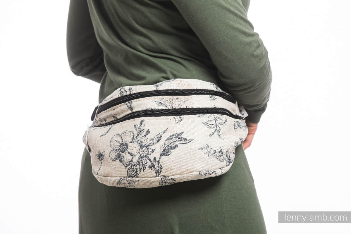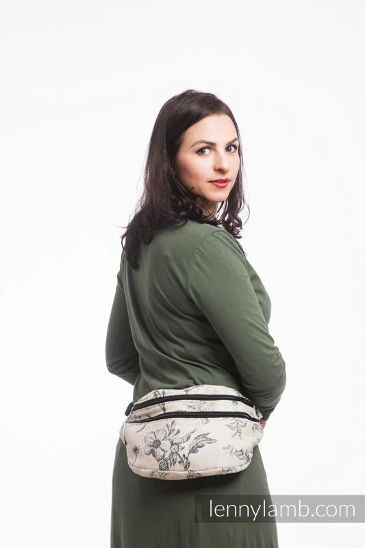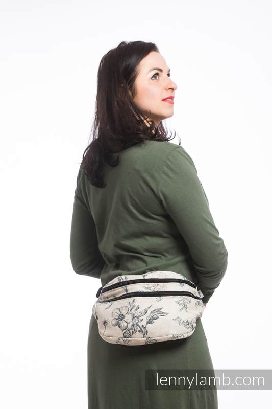 Detta är en midjeväska som är perfekt att använda när du bär i ditt barn, på ett enkelt och bekvämt sätt kan du ha ordning på dina nycklar, telefon m.m. Väskan är av samma fina vävda sjaltyg som Lenny Lambs sjalar och bärselar. Detta är en större modell, med två fack som stängs med dragkedja.