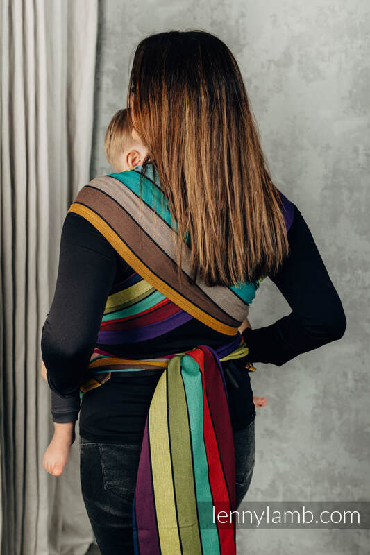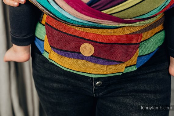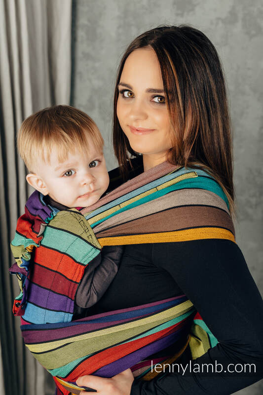 Flera olika möjligheter vad gäller inställningar av band och spännen, allt för en optimal passform för din bebis och dig som bärare. Du kan bära ditt barn på mage eller rygg. Ett trepunktsspänne i höftbältet förhindrar oavsiktlig öppning. Axelbanden är sjaltyg som du knyter enligt önskemål – detta blir verkligen mjukt och bekvämt både för dig och ditt barn.