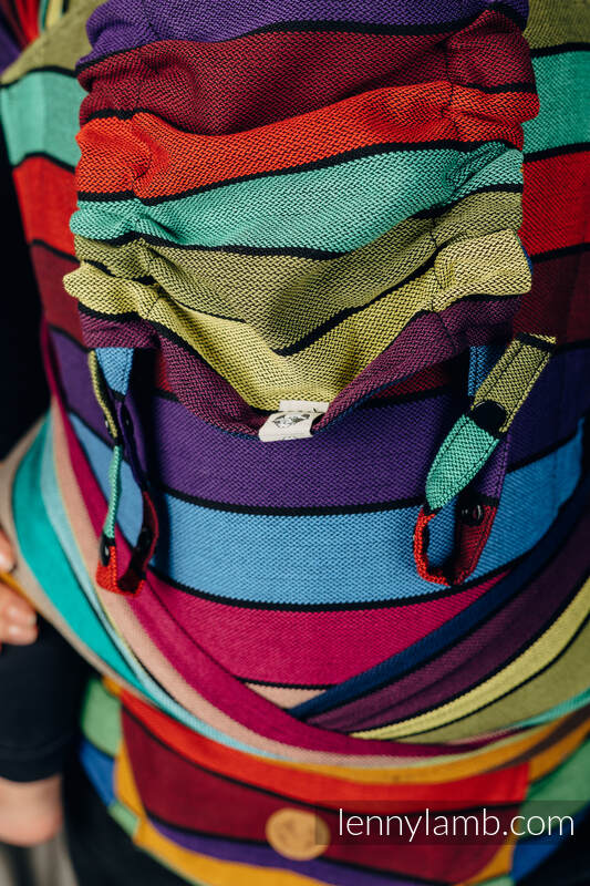 Höftbältet är mjukt och bekvämt. Justerbar huva, bra stöd när ditt barn somnat eller när du ammar. Hela produktionsprocessen sker i Polen. Även tygerna vävs i egen fabrik i Polen.