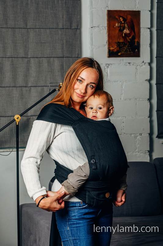 Flera olika möjligheter vad gäller inställningar av band och spännen, allt för en optimal passform för din bebis och dig som bärare. Du kan bära ditt barn på mage eller rygg. Ett trepunktsspänne i höftbältet förhindrar oavsiktlig öppning. Axelbanden är sjaltyg som du knyter enligt önskemål – detta blir verkligen mjukt och bekvämt både för dig och ditt barn.
