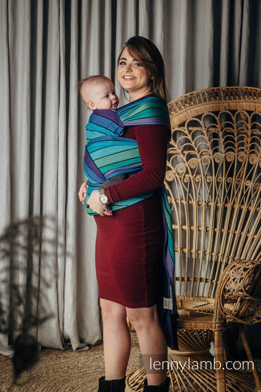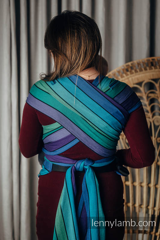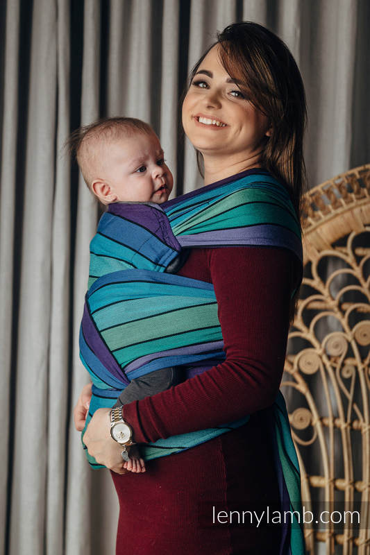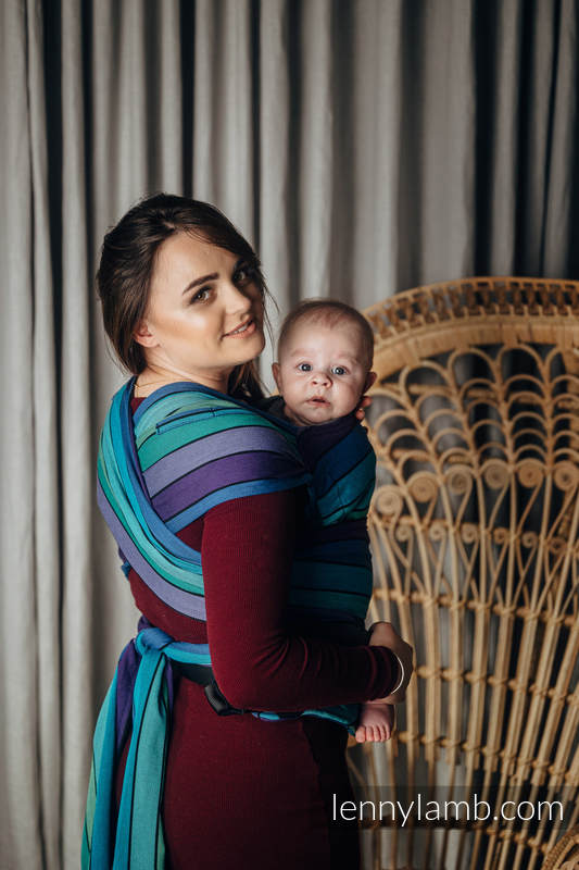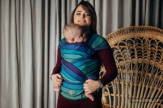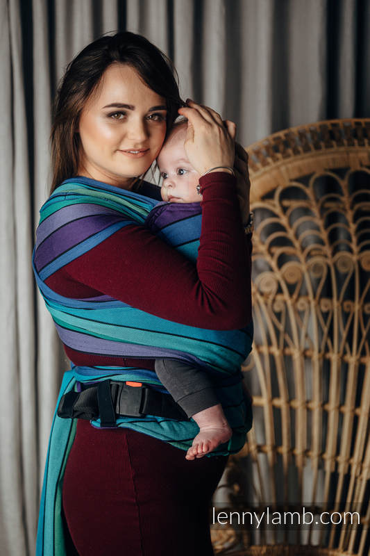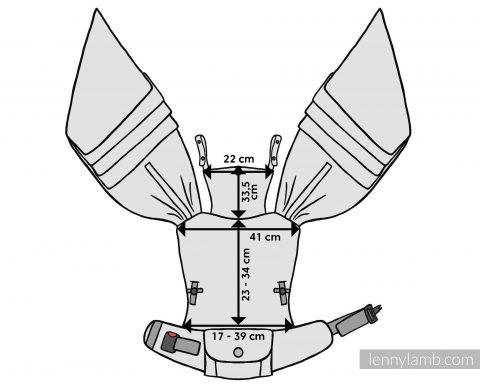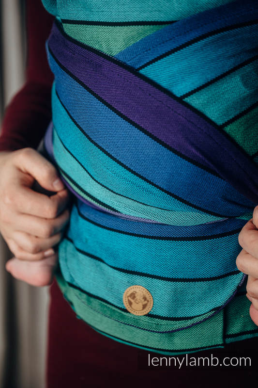Flera olika möjligheter vad gäller inställningar av band och spännen, allt för en optimal passform för din bebis och dig som bärare. Du kan bära ditt barn på mage eller rygg. Ett trepunktsspänne i höftbältet förhindrar oavsiktlig öppning. Axelbanden är sjaltyg som du knyter enligt önskemål – detta blir verkligen mjukt och bekvämt både för dig och ditt barn.