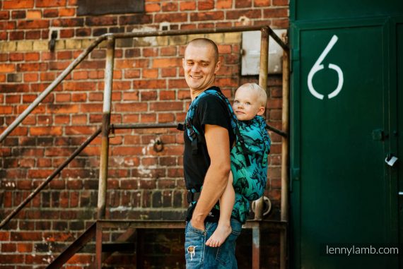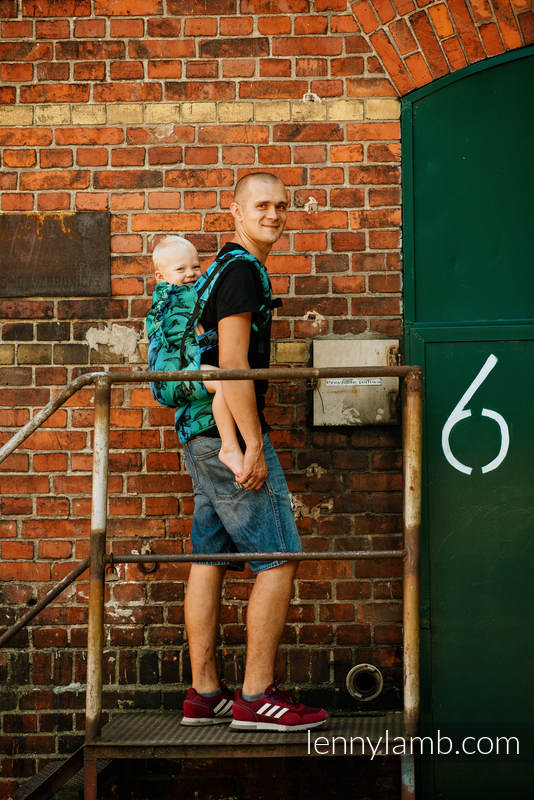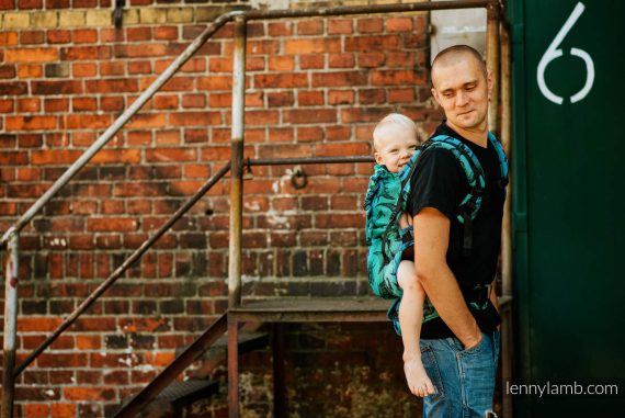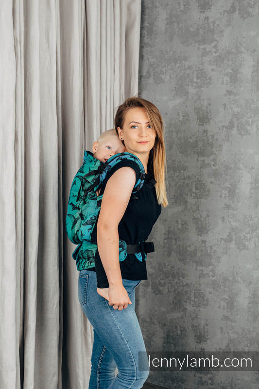 Panelen som håller upp ditt barn är justerbar höjd och bredd, den är profilerad och har benstoppning för barnets bästa komfort.Du kan bära både på mage och på rygg. För ryggbärande ska ditt barn vara stadig i nacke, rygg och bål.