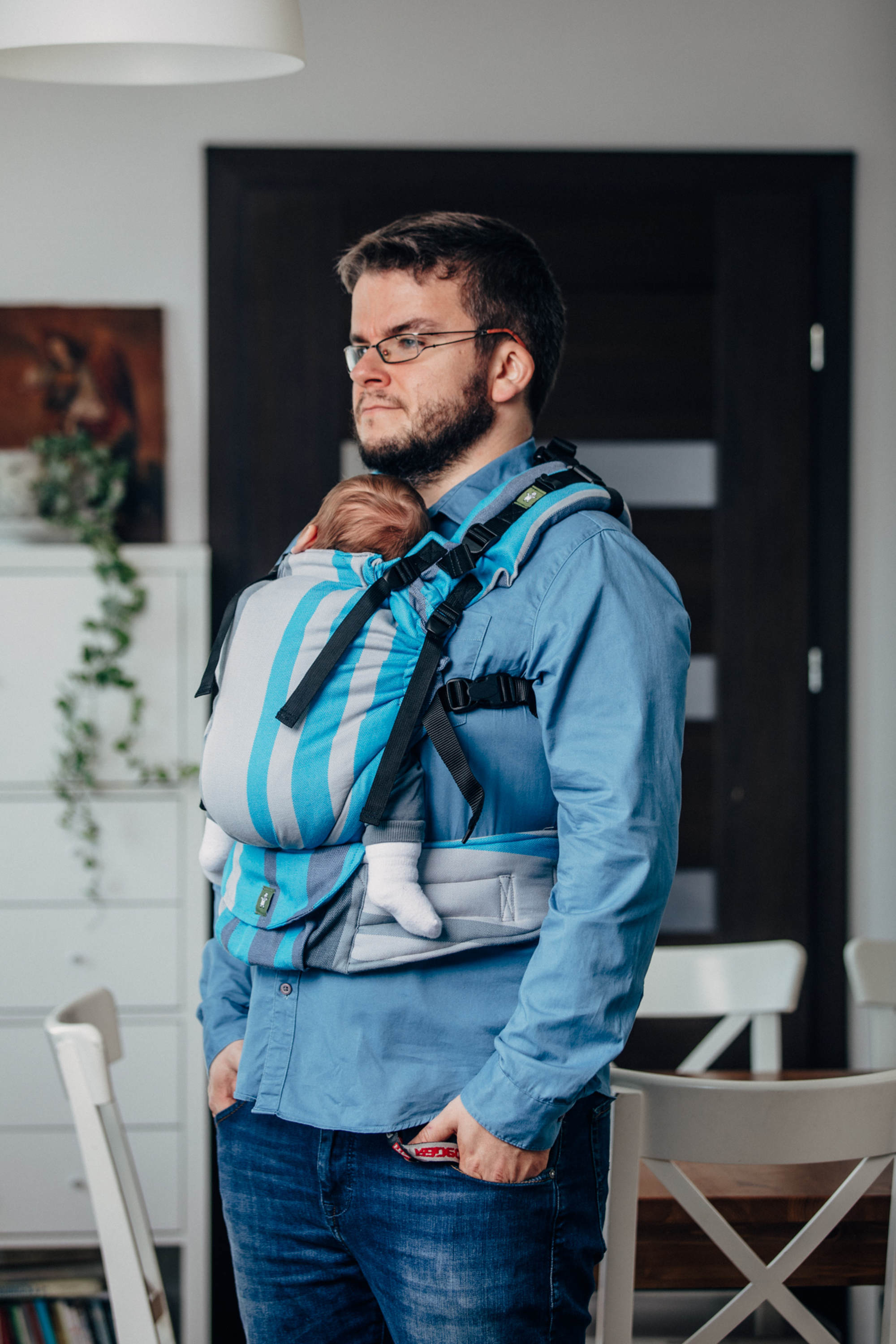 Panelen som håller upp ditt barn är justerbar både i höjd och bredd, den är profilerad och har benstoppning för barnets bästa komfort.Du kan bära både på mage och på rygg (rygg – från tidigast 4 månader.) Mjuka vadderade axelband och ett mjukt och följsamt höftbälte med rymlig ficka. En huva som är justerbar och avtagbar medföljer. Du kan välja att ha axelbanden parallella eller korsade. På höftspännet finns ett säkerhetsspänne för att förhindra att den öppnas oavsiktligen.