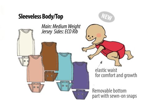 Helt nytt i ECO Hempies sortiment för i år är denna oumbärliga produkt: en Ärmfri Body/Top med en avtagbar underdel, perfekt för de varmaste sommardagarna eller som ett första lager närmast kroppen.
