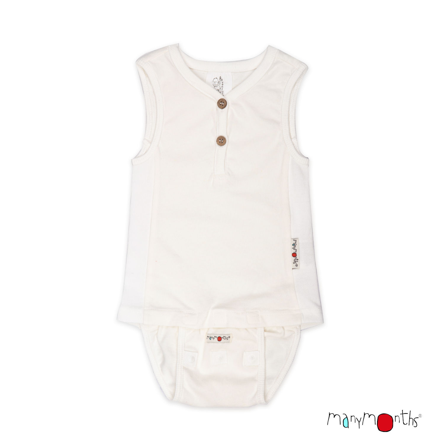 Ribbade halvcirkelformade sidor för att ge extra plats åt den söta magen och den bekväma avtagbara ManyMonths-bodydelen, förstärkt med dubbla rader av hållbara tryckknappar.