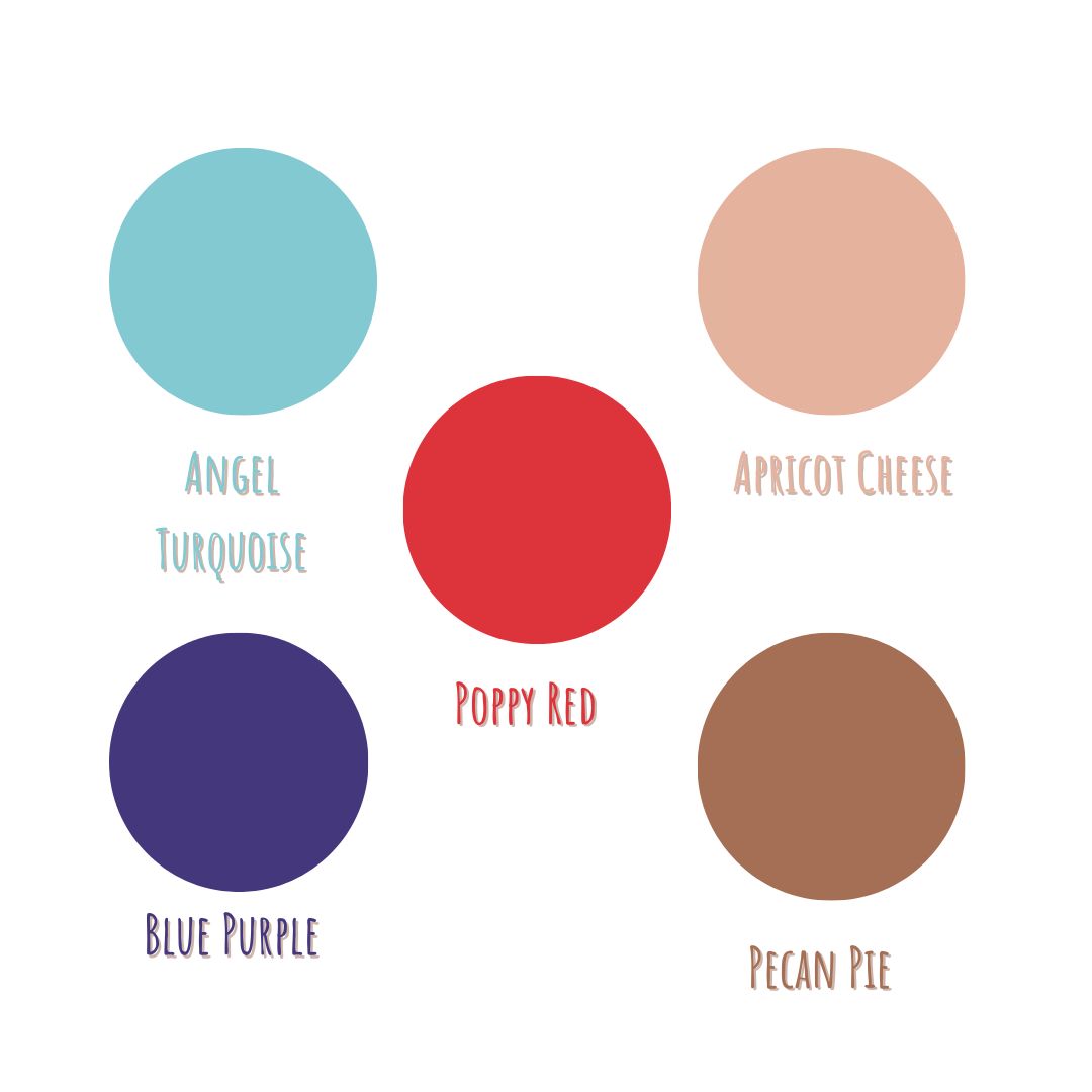 Angel Turquoise, Apricot Cheese, Blue Purple, Natural, Pecan Pie
