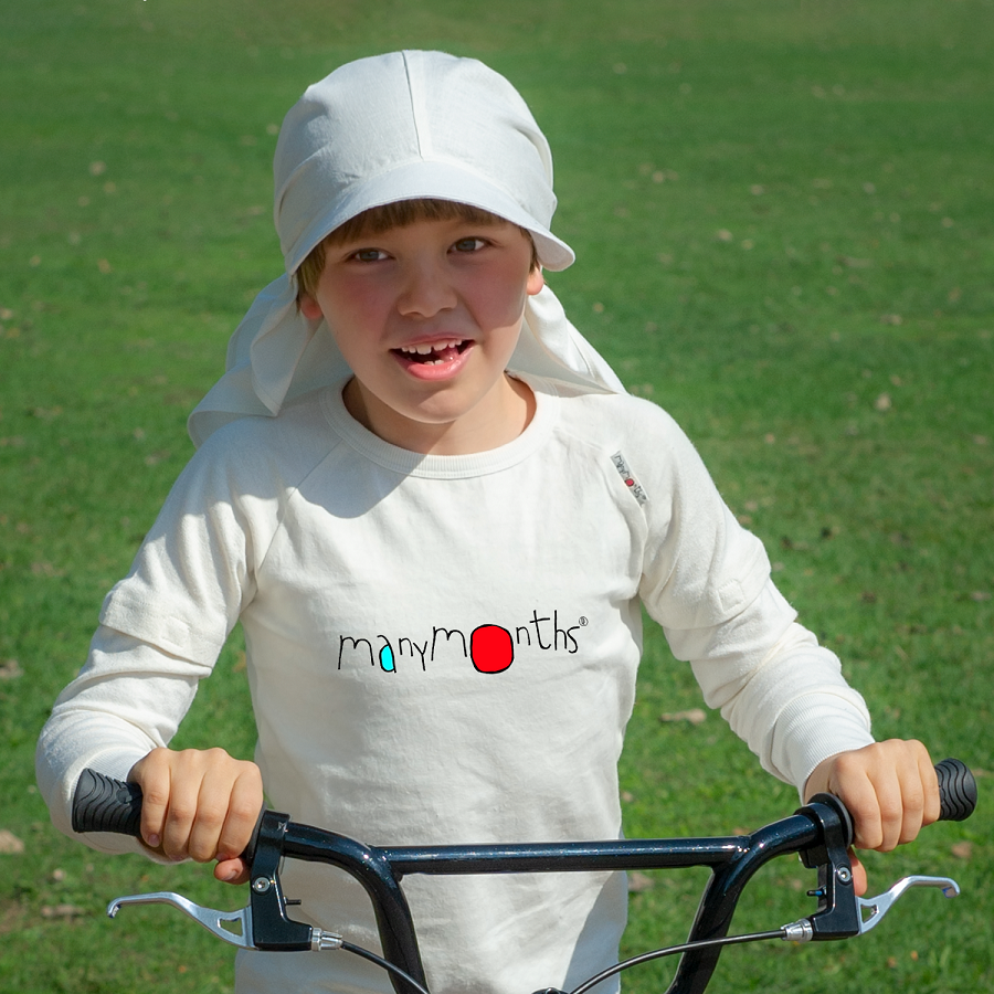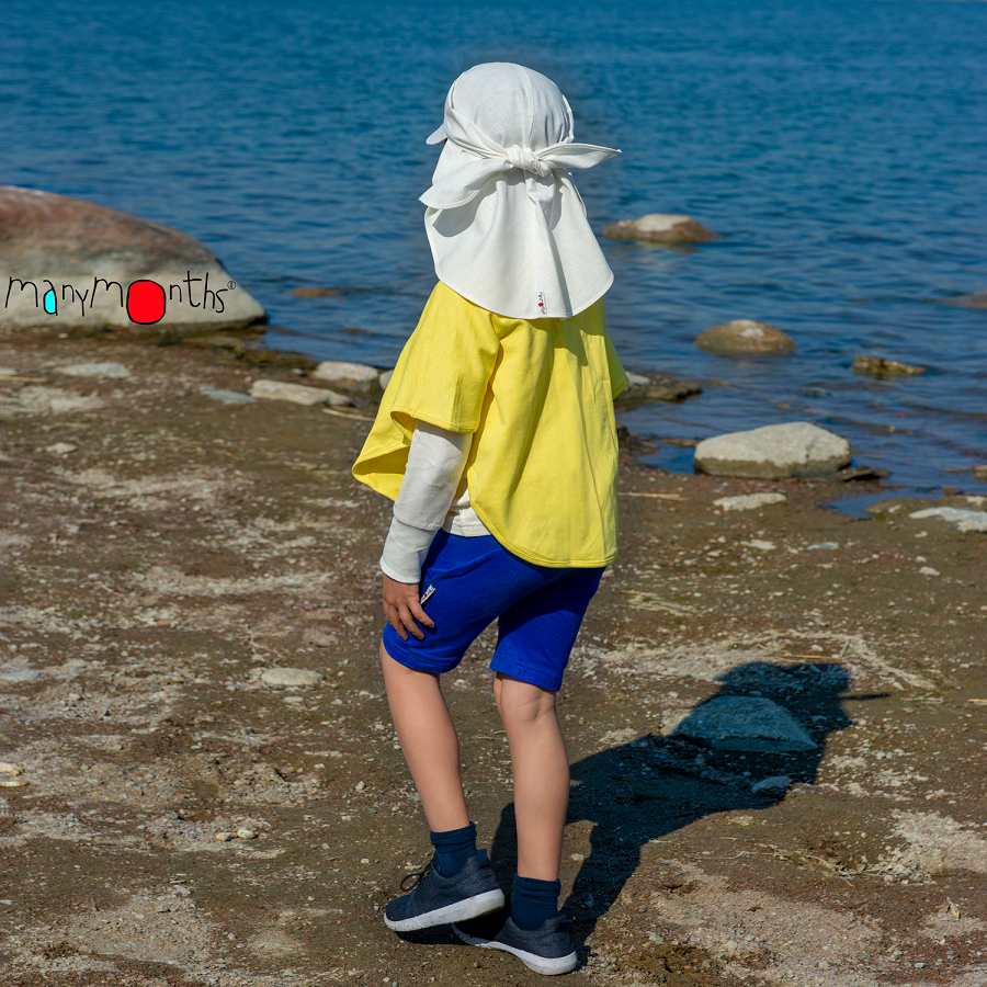 Denna scarfliknande solhatt ser inte bara bra ut och känns bra, utan är också lätt att använda. Visiret och tyget på halsen skyddar mot solen. Knyt enkelt på hatten, den växer med barnet. Tyget erbjuder ett naturligt UV-skydd. Hampa känns sval på sommaren även i varma och fuktiga klimat, vilket gör denna solhatt bekväm att bära.