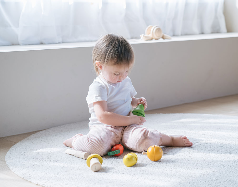 Det perfekta startkitet för små händer som vill hjälpa till. Här får ni fem härliga frukter och grönsaker som går att dela om och om igen. Träkniven är specialdesignad för att vara greppvänlig och helt barnsäker utan vassa eggar.