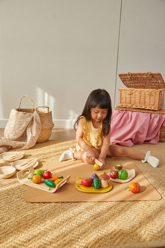 Förbättra dn låtsasmeny med skärbar frukt och grönsaker. Setet inkluderar ett äpple, päron, apelsin, banan, gurka, svamp, morot, kniv och bricka. Lär dig om vikten av att äta frukt och grönsaker samtidigt som du utforskar finmotorisk utveckling. Skapa lekfulla stunder med denna fantasifulla frukt- och grönsakssamling!